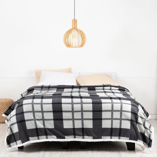 Frazada 1.5 Plazas Polar Sherpa Tartán Negro