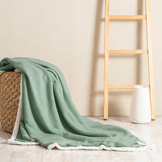 Frazada 1.5 Plazas Polar Sherpa Tartán Verde