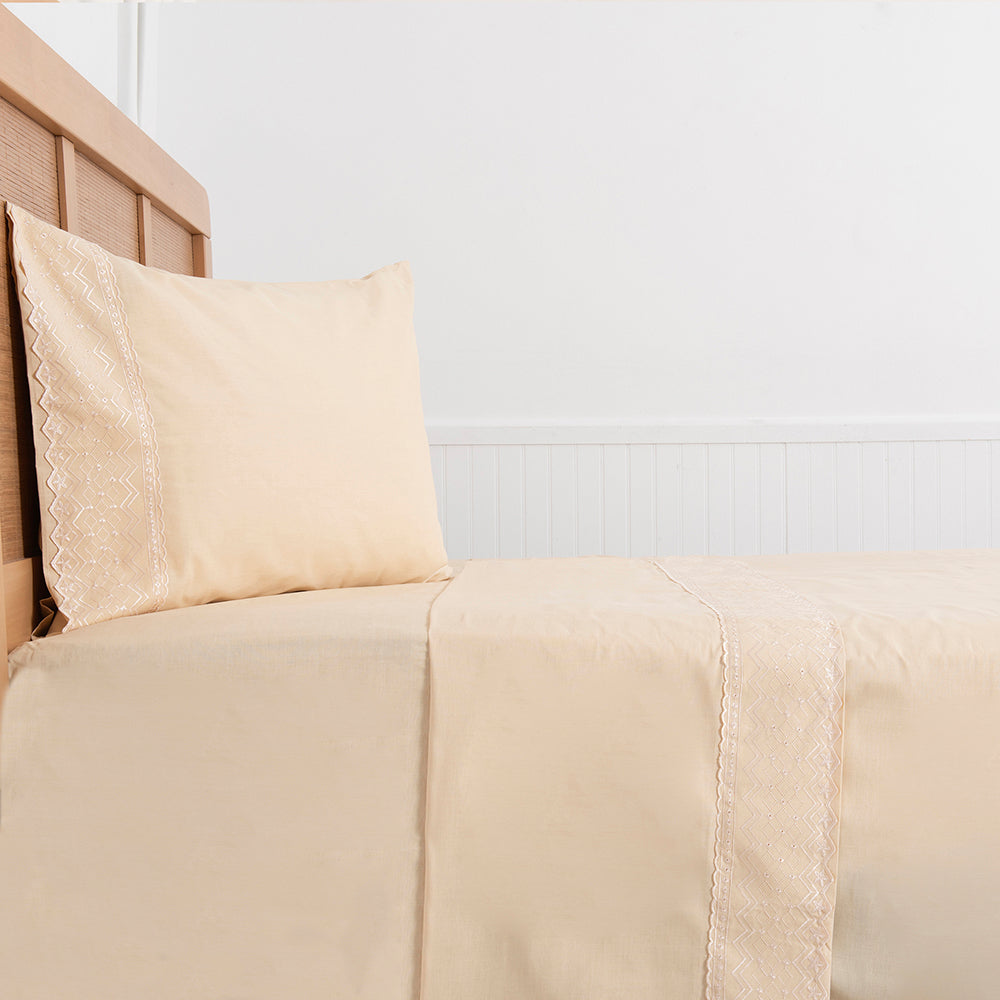 Sábana 1.5 Plazas 144 Hilos Broderie Geo Nude