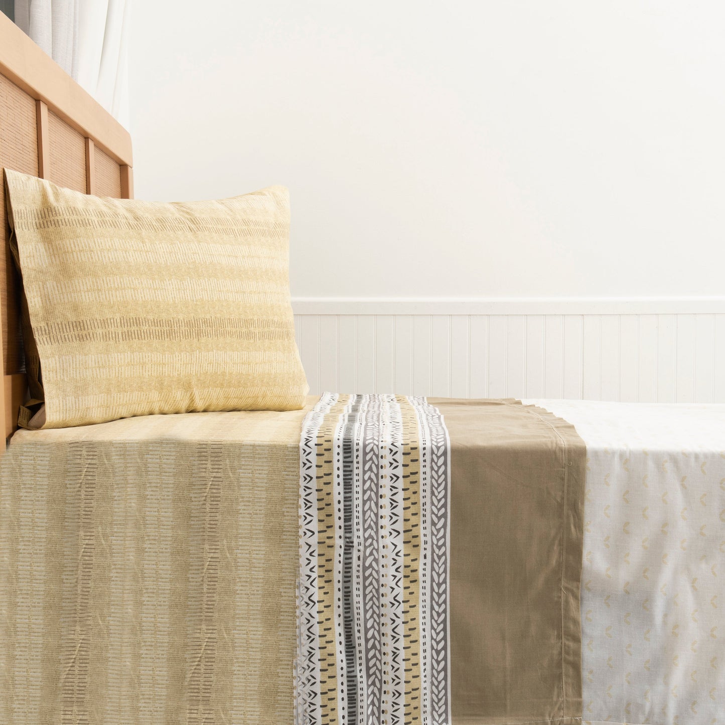 Set de sábanas con delicados estampados. Nuestros diseños tienen un alto desarrollo, donde los bordes juegan un papel protagónico al armar tu cama. Combinalos con plumones o quilt de colores sólidos para darles el lugar que se merecen.