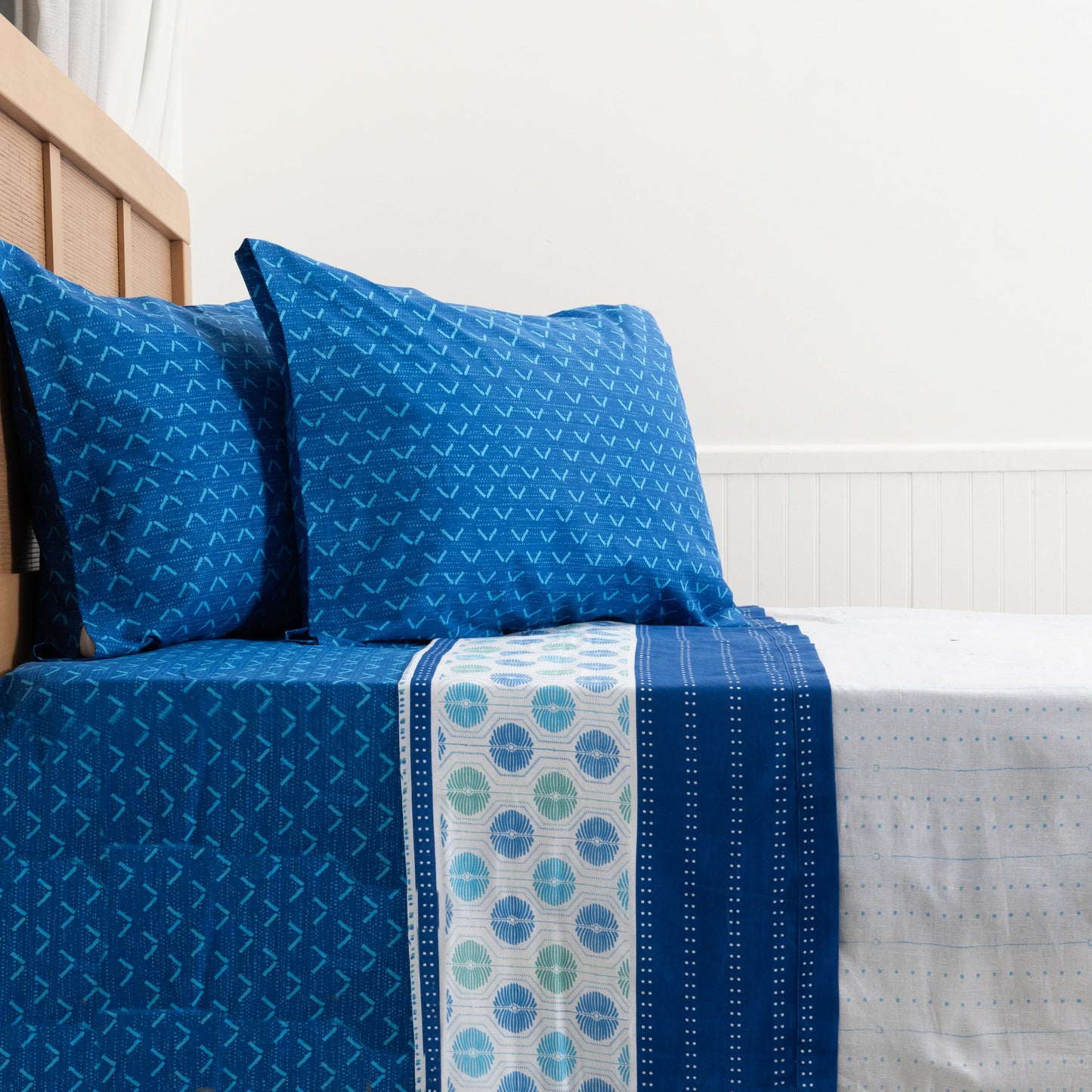 Set de sábanas con delicados estampados. Nuestros diseños tienen un alto desarrollo, donde los bordes juegan un papel protagónico al armar tu cama. Combinalos con plumones o quilt de colores sólidos para darles el lugar que se merecen.