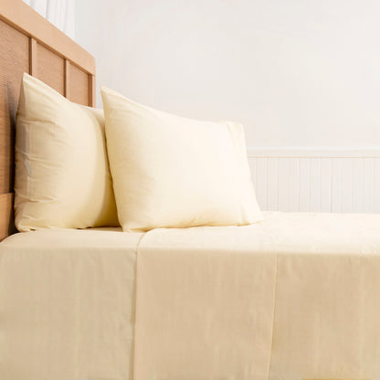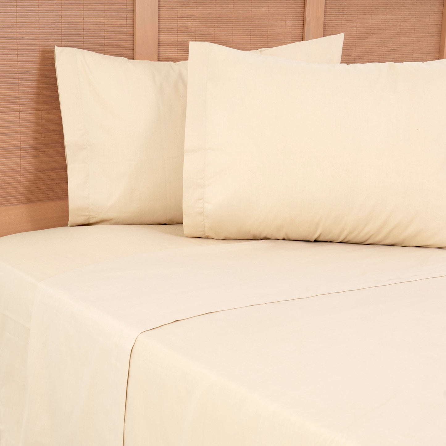 Confeccionada con una mezcla de 50% algodón y 50% poliéster, ofrece una textura suave, fresca y duradera, perfecta para el uso diario. Su tejido de 200 hilos proporciona un acabado más liso y sofisticado, manteniendo su forma y suavidad lavado tras lavado.