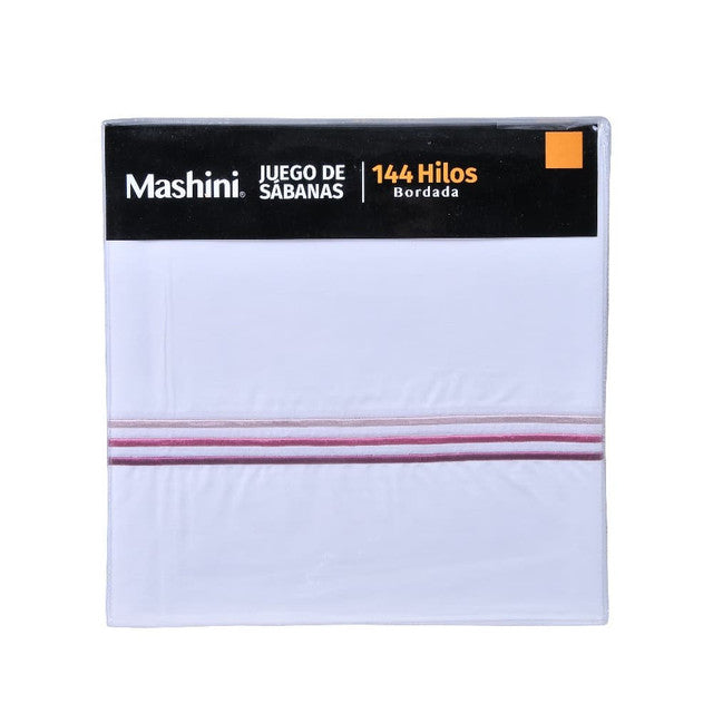 Sábana 1.5 Plazas 144 Hilos Bordada Line Rosado