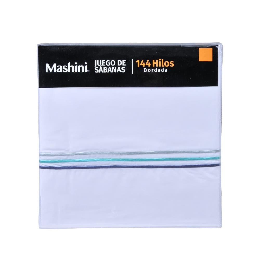 Set de sábanas con una terminación bordada en colores, ideal para combinar con cubrecamas y cojines en los mismos tontos del bordado.