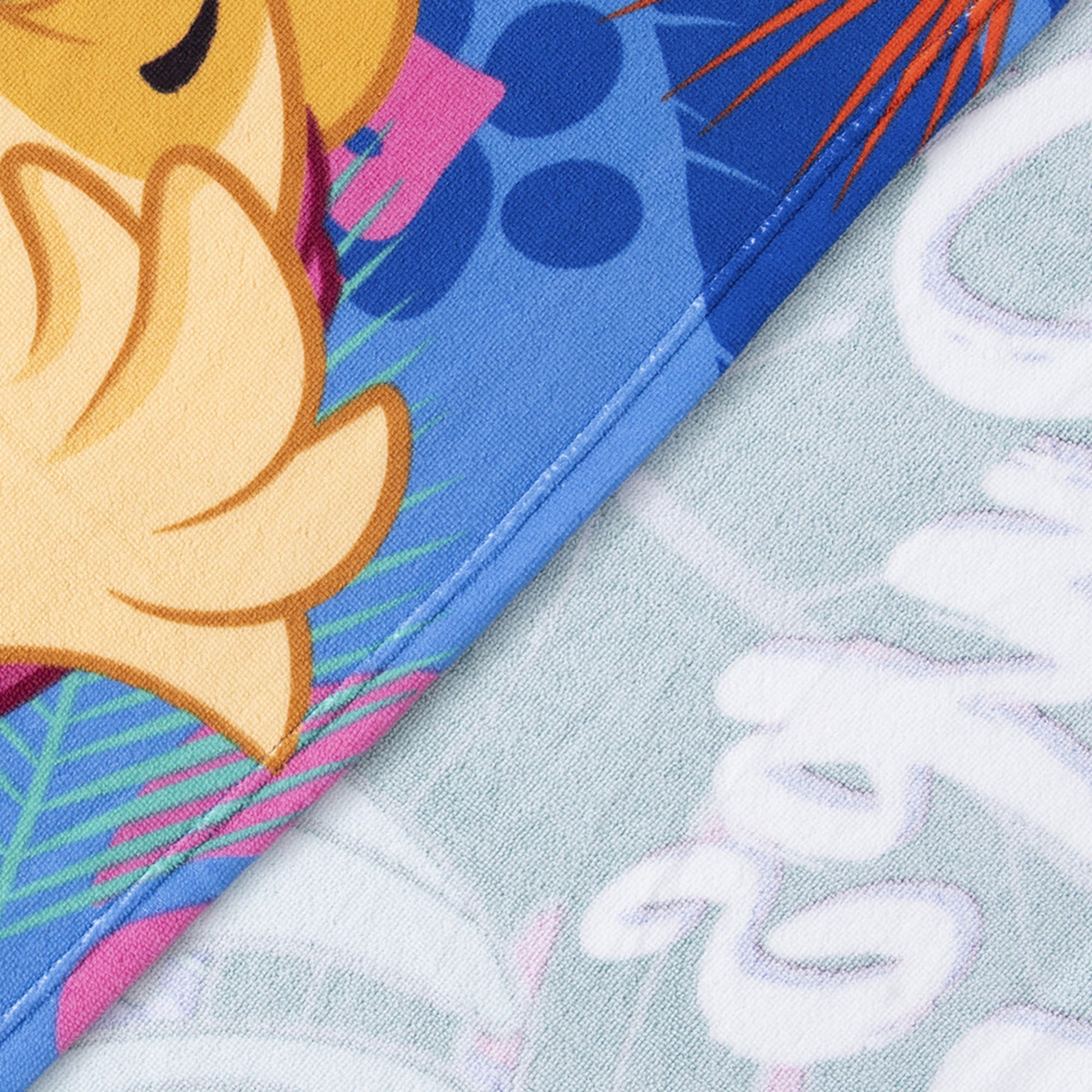La toalla, diseñada con tus personajes favoritos, combina diversión y funcionalidad. Es suave, absorbente y del tamaño ideal para mantener a los niños cómodos después de un chapuzón en el mar o la piscina. El bolso a juego no solo es encantador, sino también práctico para transportar la toalla y otros esenciales de playa.